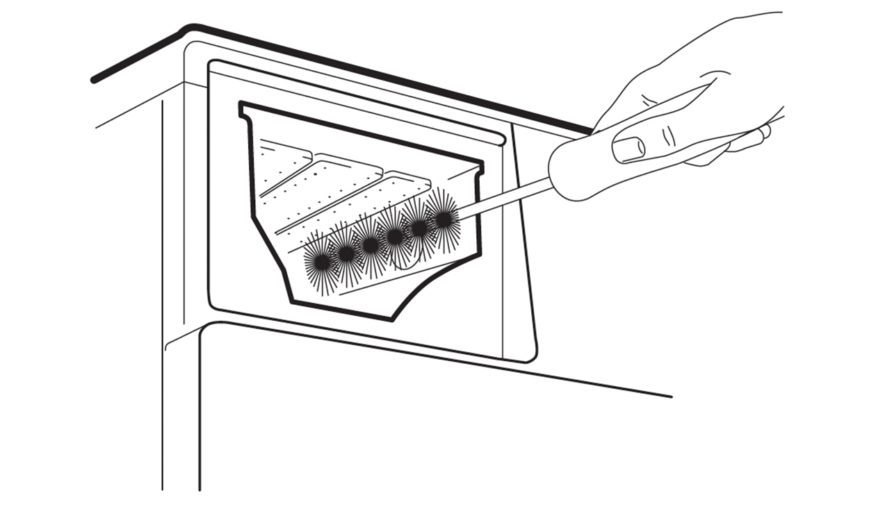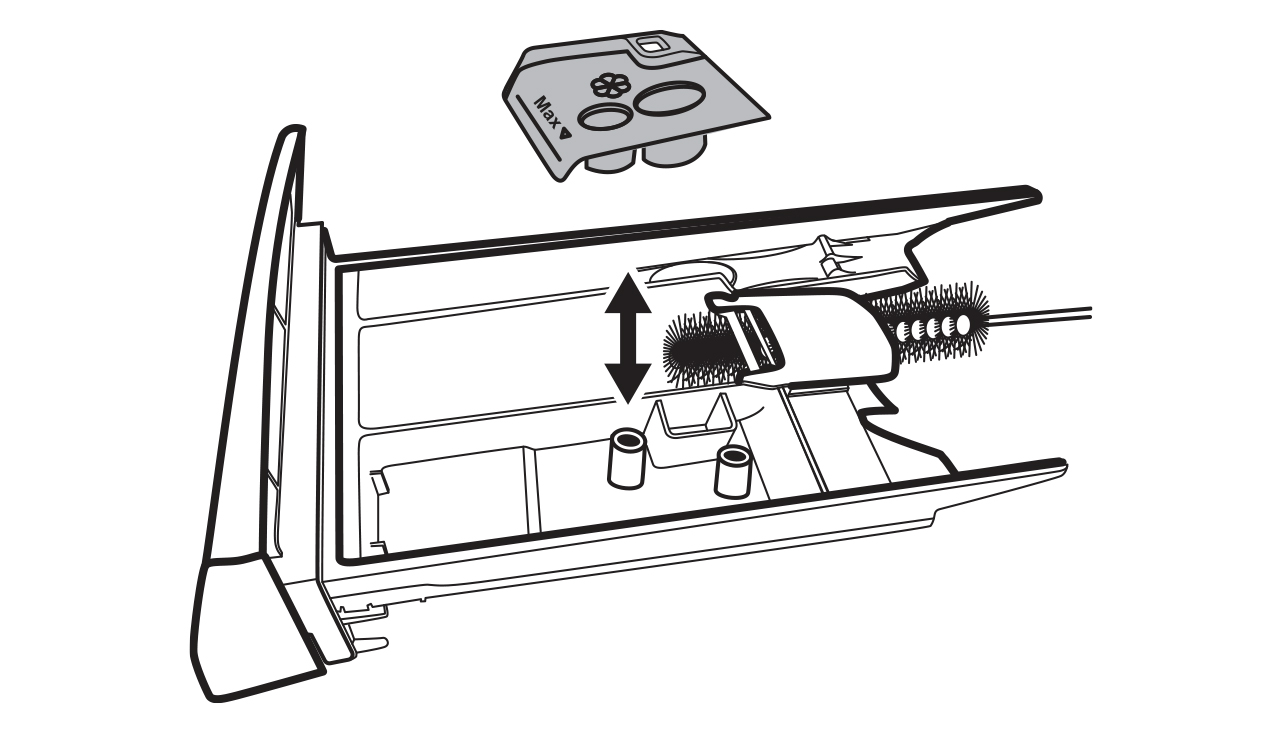 Asegúrese de eliminar todos los residuos de detergente de la parte superior e inferior del hueco. Utilice un cepillo pequeño para limpiar el hueco.